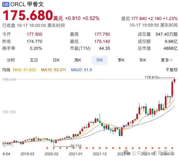 综上所述,Oracle股价的暴涨并非偶然,而是其多年积累的技术实力和战略眼光的体现,这使得甲骨文从1977年成立至今,都没掉队。