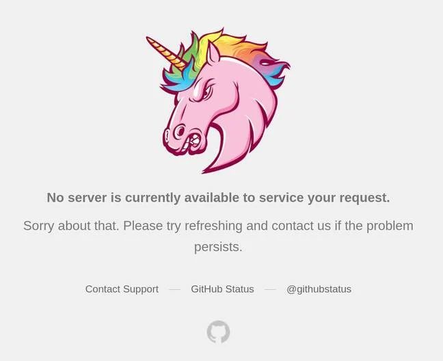 就连GitHub的网站和它的API接口也进不去了,网站上就显示个独角兽和错误消息,想用SSH进仓库也进不去。