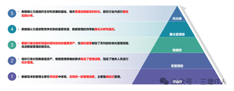 DCMM(Data Management Capability Maturity Assessment Model 的简称),是我国在数据管理领域首个正式发布的国家标准(《数据管理能力成熟度评估模型》(GB/T 36073-2018)),旨在帮助企业利用先进的数据管理理念和方法,建立和评价自身数据管理能力,持续完善数据管理组织、程序和制度,充分发挥数据在促进企业向信息化、数字化、智能化发展方面的价值。DCMM将数据管理能力成熟度划分为五个等级,自低向高依次为初始级、受管理级、稳健级、量化管理级和优化级,不同等级代表企业数据管理和应用的成熟度水平不同。