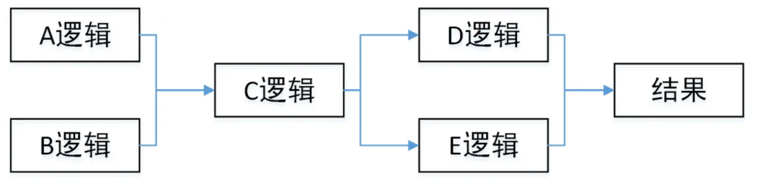 这样A B 两个逻辑可以并行执行,D E两个逻辑可以并行执行,最大执行时间取决于哪个逻辑更慢。