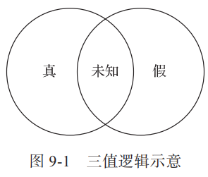 大多数编程语言都包含布尔数据,该类型数据仅有两个值 TRUE 和 FALSE。这种逻辑体系被称为二值逻辑,即任何事物要么是真(TRUE),要么是假(FALSE)。然而在 SQL中,如下图所示,存在第三个值—未知,也就是 UNKNOWN,因此 SQL 的逻辑体系被 称为三值逻辑。UNKNOWN 在我们的日常生活中有着相当广泛的应用,例 如在填写问卷时,如果用户不愿透露某些信息,相应的录入项就会缺失。在公司组织结构中,也可能出现某些职位(如董事长或总经理)没有上级领导的情况。为了在 SQL 中表示这类情况,我们需要设定一个特殊的标记。这个标记在 SQL 中既不是 一个具体的值,也不是一个变量,它就是 NULL。在数据表中,NULL 通常显示为一个空字段,表示数据项的值未知,不确定是否存在,或者根本就没有 相应的数据。
