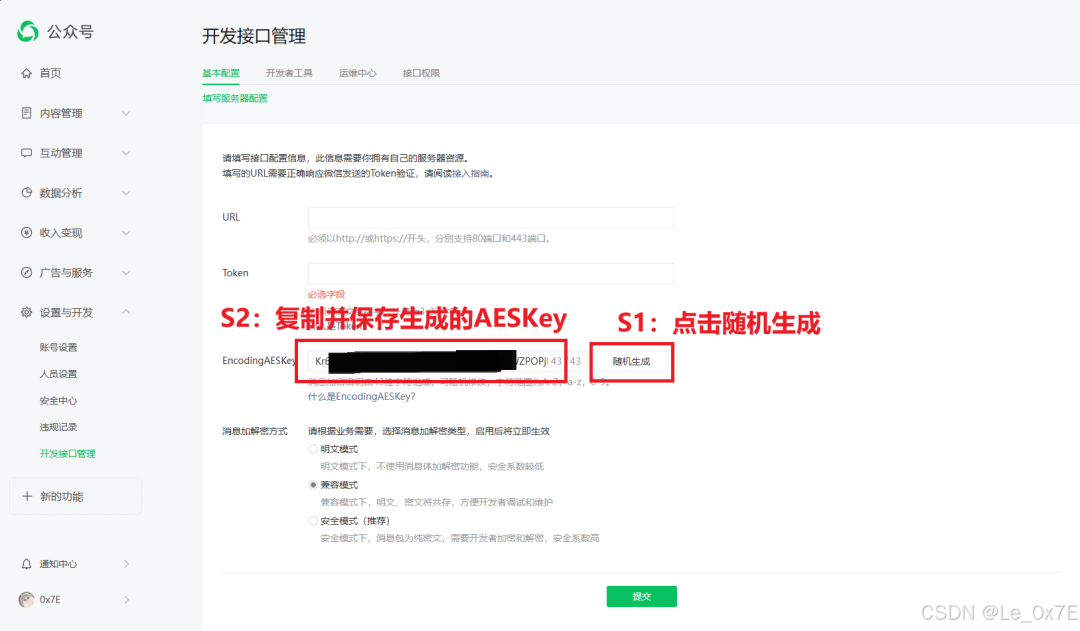 点击上图中S5处的“修改配置”,然后点击AESKey栏目右边的“随机生成”,复制、保存并注备注好!这个页面不要关闭,最后一步还要用。