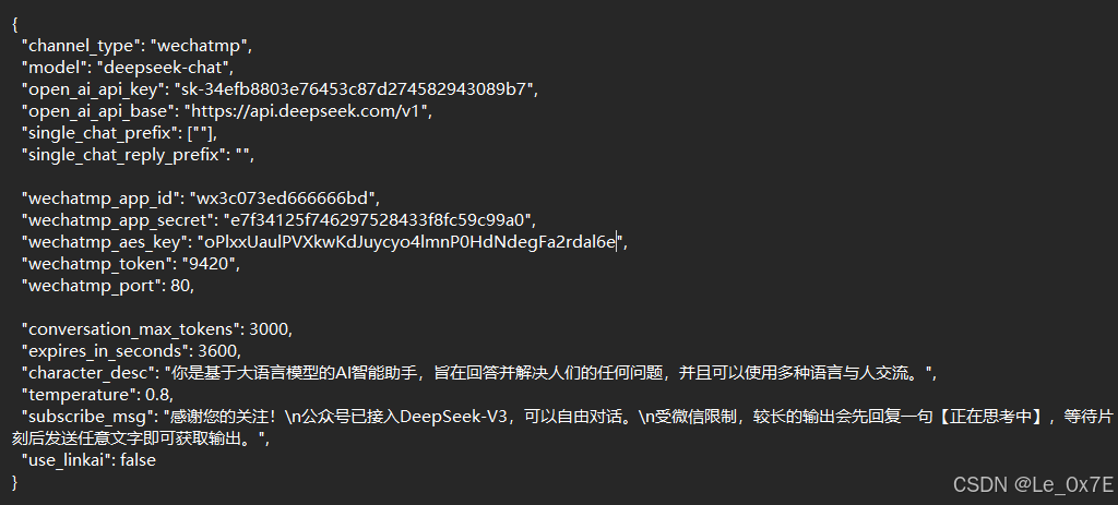 "subscribe_msg": "感谢您的关注!\n公众号已接入DeepSeek-V3,可以自由对话。\n受微信限制,较长的输出会先回复一句【正在思考中】,等待片刻后发送任意文字即可获取输出。",