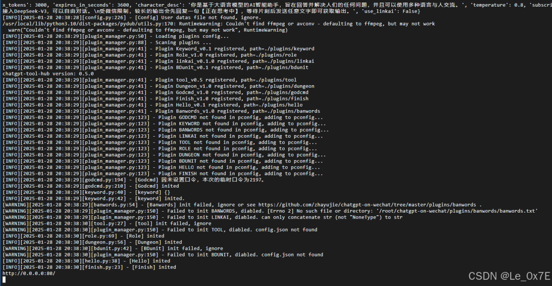 若输出如下图则运行正常无报错,此时云服务器的终端暂时先不要关闭(浏览器选项卡不要关掉)
