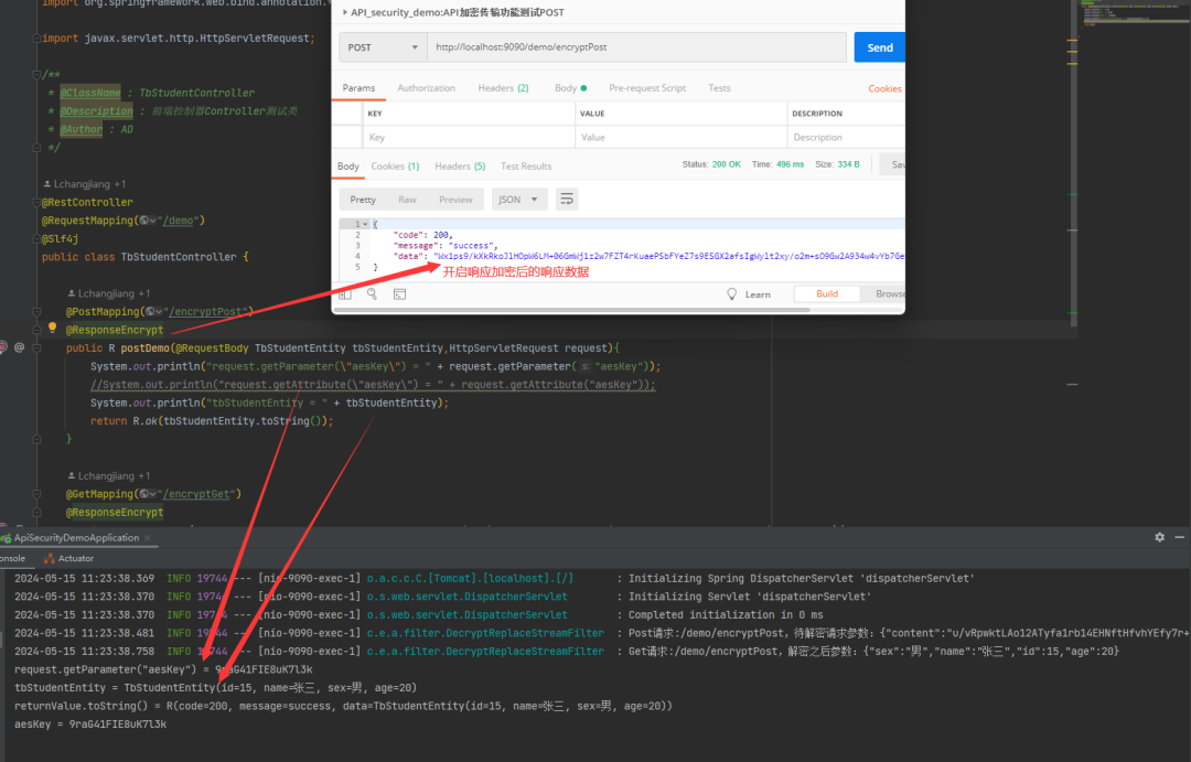 * Description: 响应数据加密后,模拟前端进行解密操作