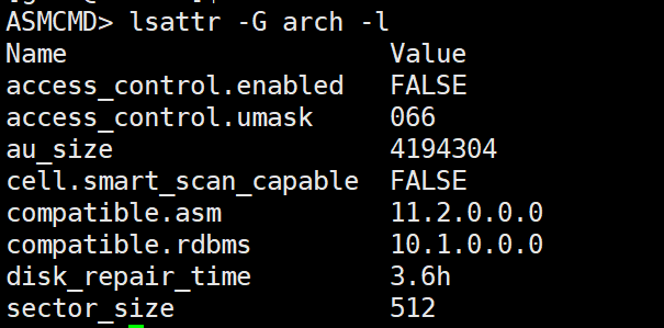 alter diskgroup arch set attribute 'COMPATIBLE.rdbms'='11.2.0.0.0';