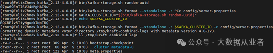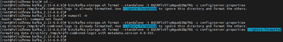 [root@FelixZhnew kafka_2.13-4.0.0]# KAFKA_CLUSTER_ID="$(bin/kafka-storage.sh random-uuid)"[root@FelixZhnew kafka_2.13-4.0.0]# echo $KAFKA_CLUSTER_ID