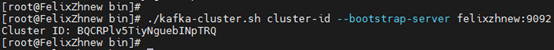 [root@FelixZhnew bin]# ./kafka-cluster.sh cluster-id --bootstrap-server felixzhnew:9092