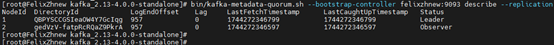 [root@FelixZhnew kafka_2.13-4.0.0-standalone]# bin/kafka-metadata-quorum.sh --bootstrap-controller felixzhnew:9093 describe –replication