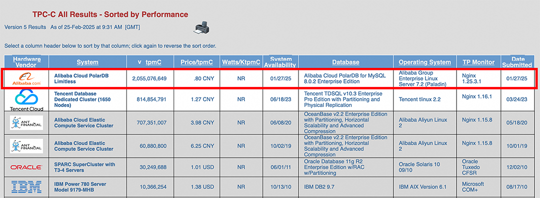 日前,阿里云PolarDB云原生数据库以超越原记录2.5倍的性能一举登顶TPC-C基准测试排行榜,以每分钟20.55亿笔交易(tpmC)和单位成本0.8元人民币(price/tpmC)的成绩刷新TPC-C性能和性价比双榜的世界纪录。
