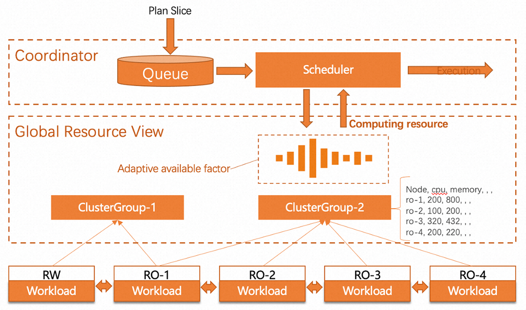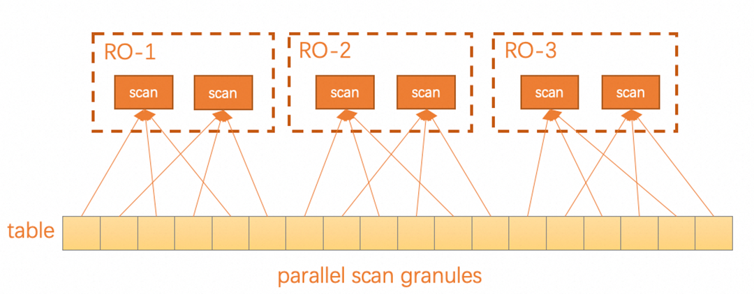 因为是共享存储架构,理论上可以将并行任务调度到任意节点执行,但并行查询的目标是利用空闲计算资源进行加速,并且不能对客户线上业务造成负面影响。