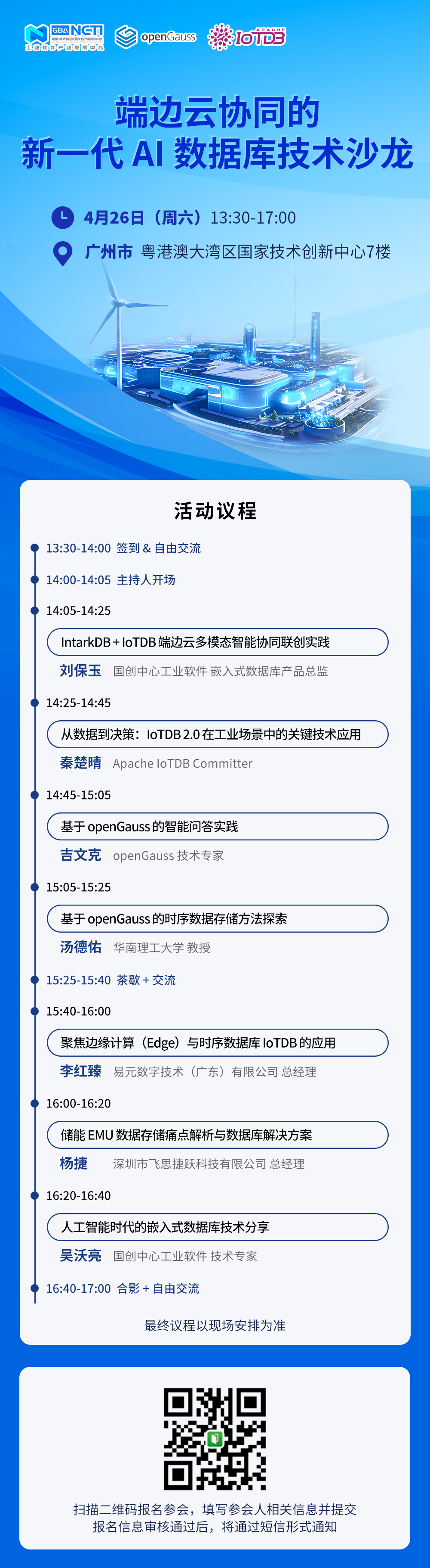 🗣 主办方:粤港澳大湾区国家技术创新中心、openGauss 社区、IoTDB 社区