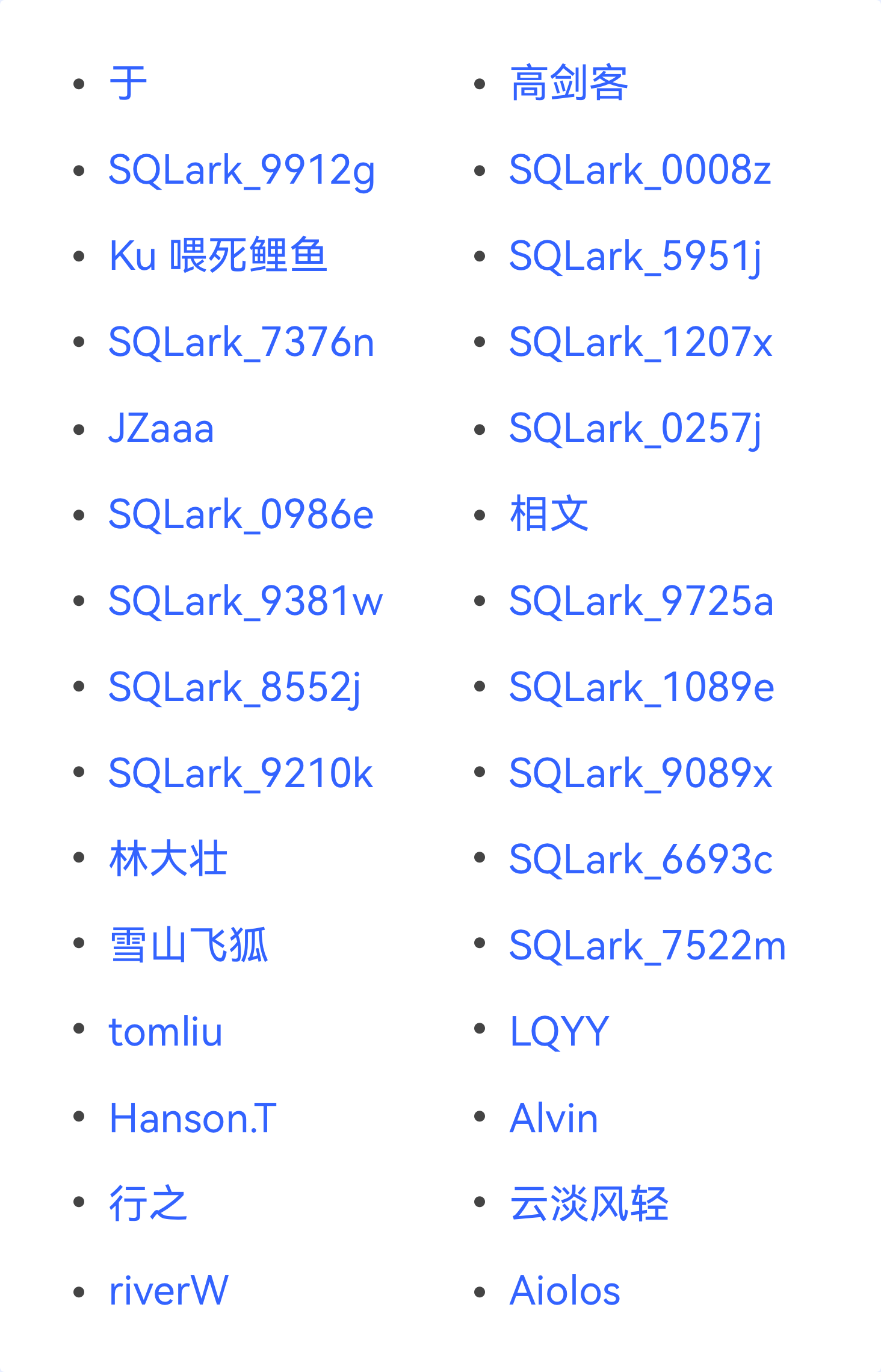 👉以上贡献者 ID,也可在:SQLark 官网 | 最近更新 | V3.4 查看;