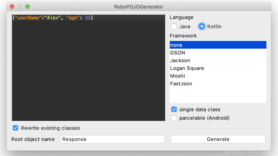 RoboPOJOGenerator—JSON (GsonFormat也可以,但是好久没更新过了)