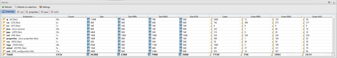 可以非常直观地看到你的项目中所有类型的文件的信息