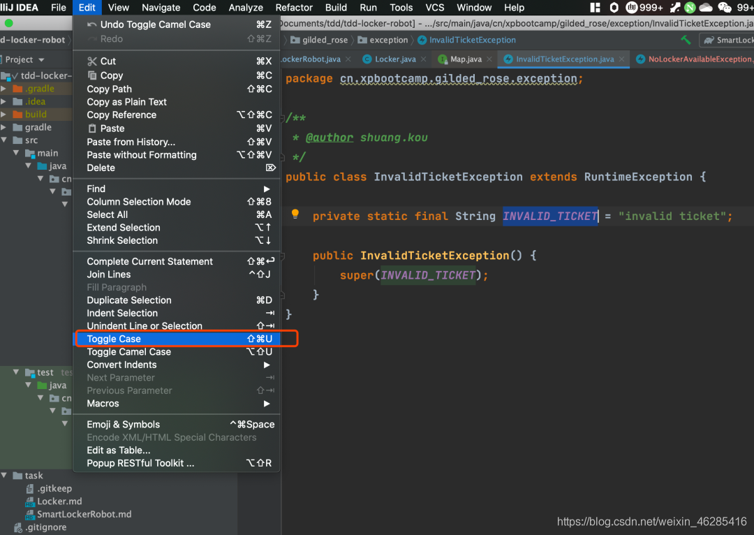 快捷键如果忘记的话可以在 IDEA 的菜单栏的 Edit 找到