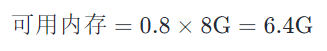假设给定 8G 内存,并且预留 20% 的空间,我们可以使用的内存为: