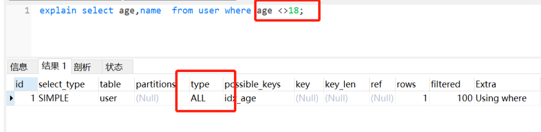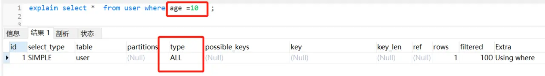 虽然age加了索引,但是因为对它进行运算,索引直接迷路了。。。