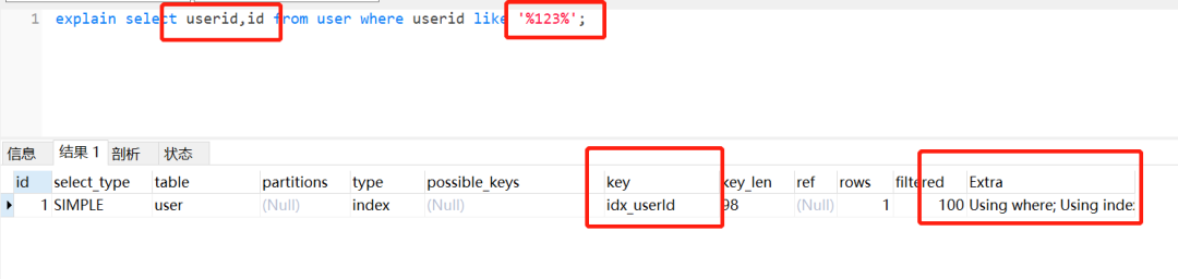//id为主键,那么为普通索引,即覆盖索引登场了。