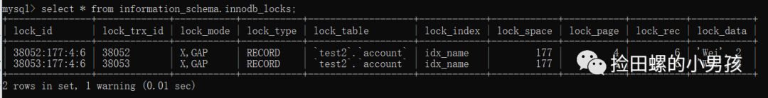这时候可以用 select*frominformation_schema.innodb_locks;