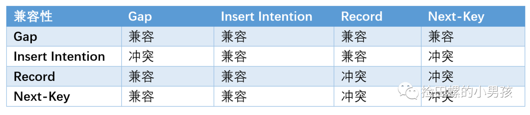 锁模式兼容矩阵(横向是已持有锁,纵向是正在请求的锁):
