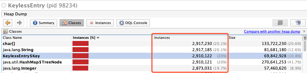 可以看到相关的 TreeNode 有 291w 个,远超正常情况下的 10000 个!说明 HashMap 一直在增长,自此我们可以定位出问题代码所在!