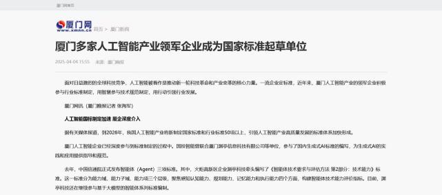 渊亭科技积极参与人工智能国家标准制定,获厦门电视台、厦门晚报等媒体重点报道,展现行业领导力。