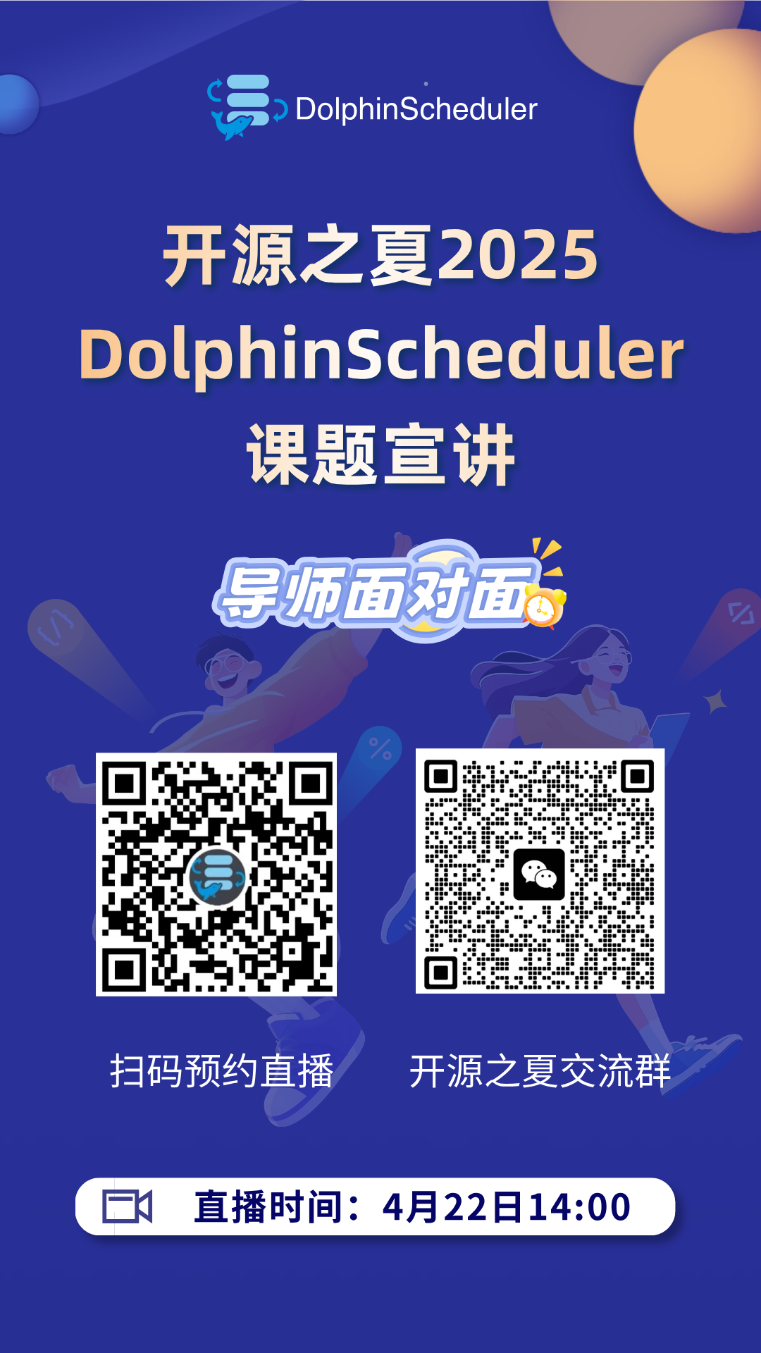 开源之夏(Open Source Summer,简称OSPP)是由中国科学院软件研究所发起并长期支持的一项暑期开源活动,旨在鼓励高校学生参与开源软件开发与维护。2025年开源之夏已正式启动!目前进入学生申请项目的关键阶段,Apache DolphinScheduler社区今年精心准备了两个高质量课题。为帮助同学们更好地理解项目需求并与导师建立高效沟通,我们特别举办线上宣讲活动!