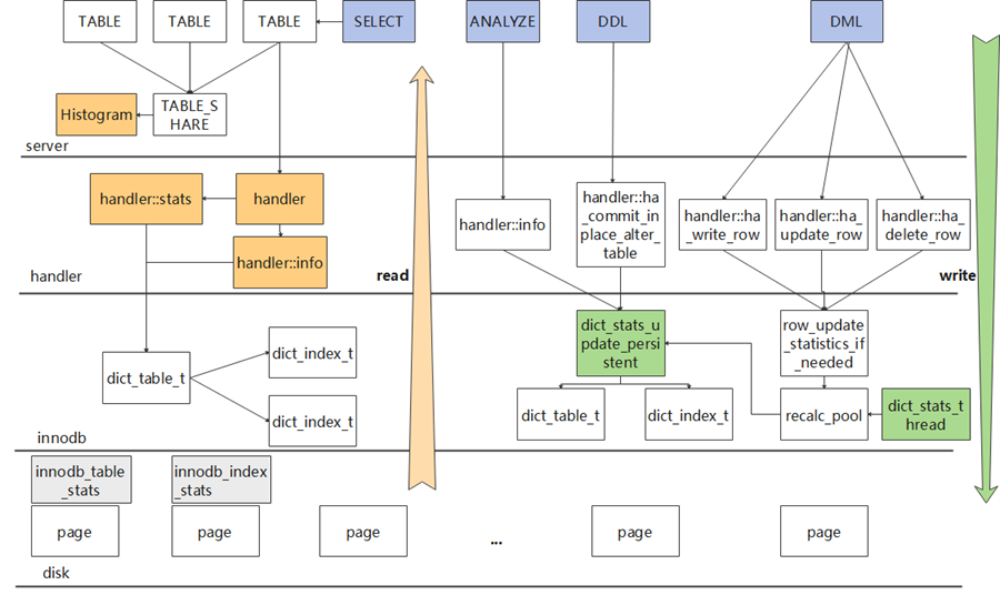 优化器在做代价估算时,会通过访问TABLE对象获取 handler ,以此获取保存在 handler::stats 中的统计信息。