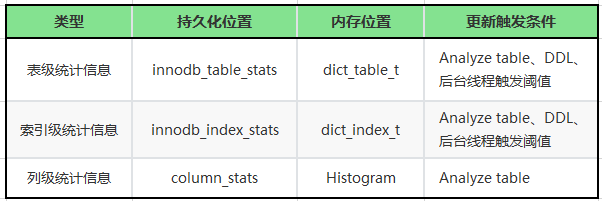 Innodb 层的统计信息会持久化在 mysql.innodb_table_stats 和 mysql.innodb_index_stats 两个系统表中。