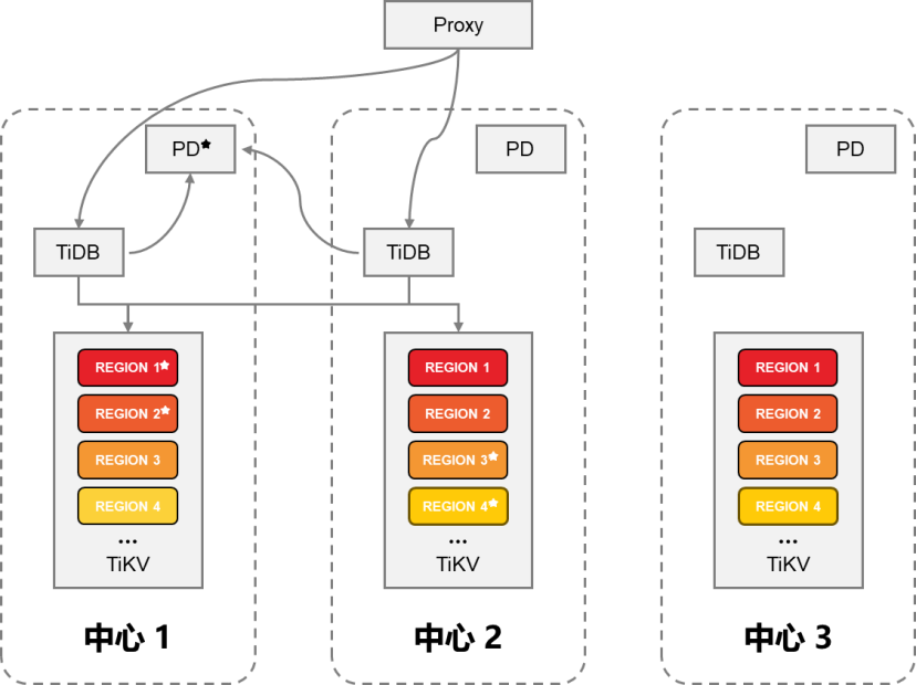 第三阶段:在确认数据中心 2 稳定运行后,团队重复类似第一阶段的操作,将数据中心 3 的节点以扩容的形式加入集群,TiDB 自动以 Region 为单位逐一迁移数据副本。整个过程同样采用“小步快跑”的方式,人为控制迁移速度,并设置数据中心 3 的节点暂不承担业务流量。