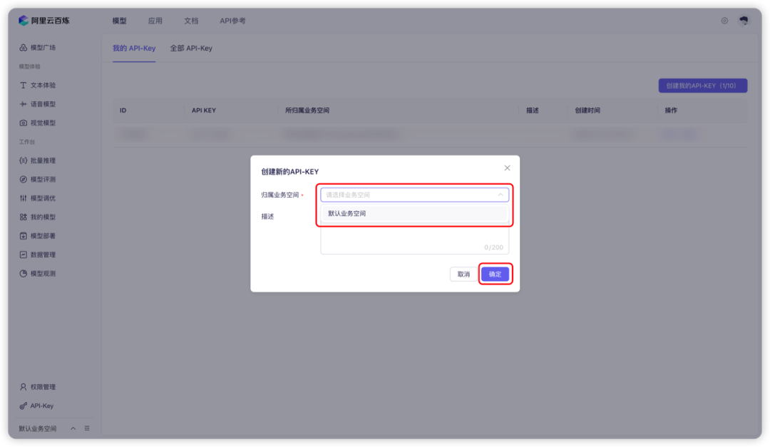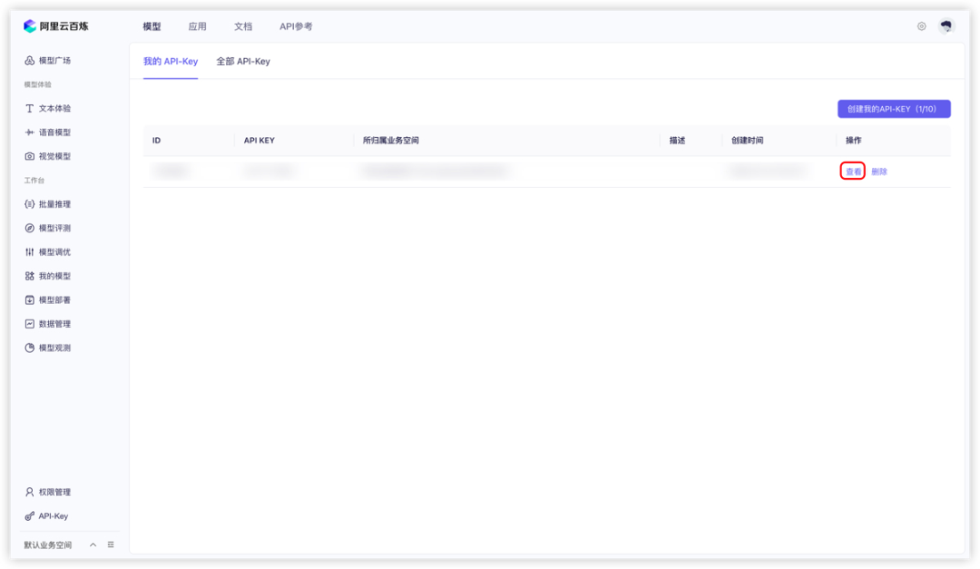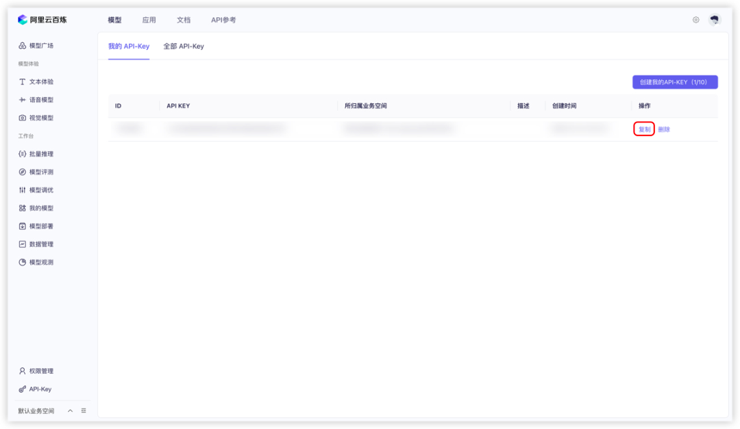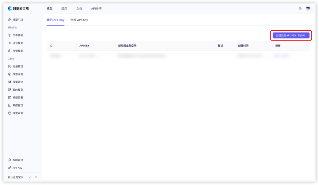 地址:https://bailian.console.aliyun.com/?tab=model#/api-key