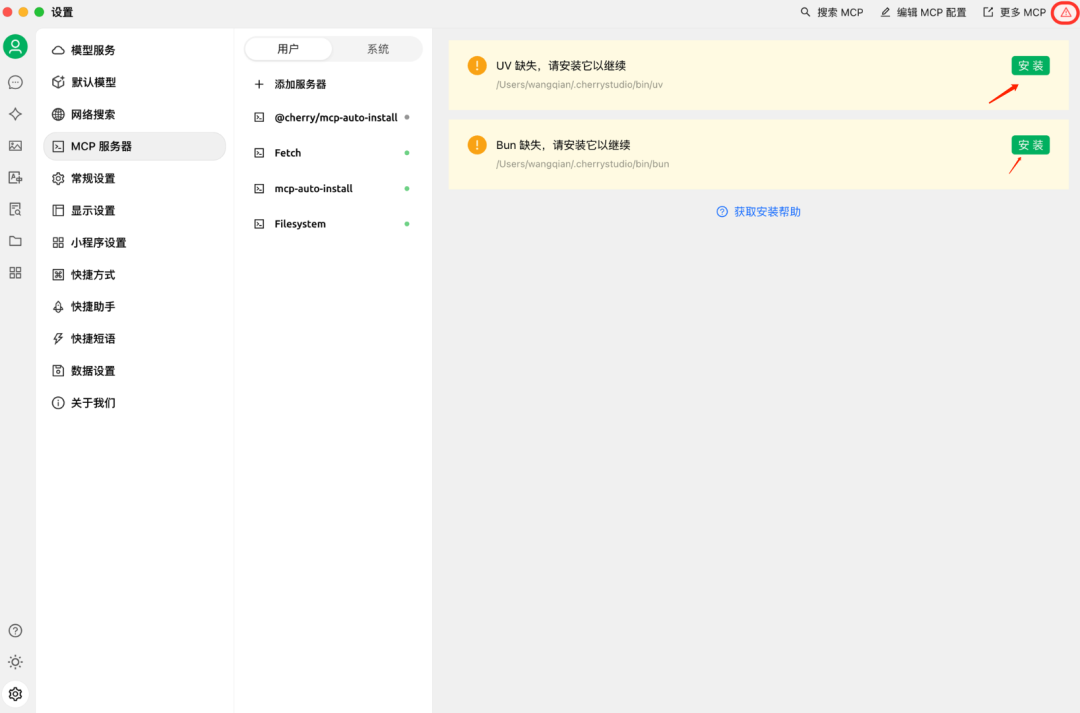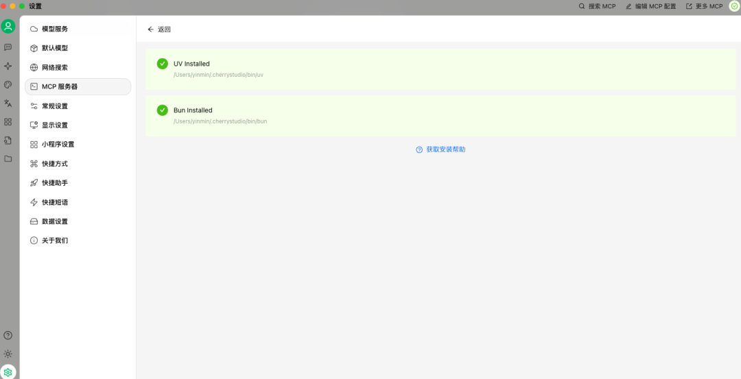 说明:Cherry Studio 目前只使用内置的 uv 和 bun,不会复用系统中已经安装的 uv 和 bun。