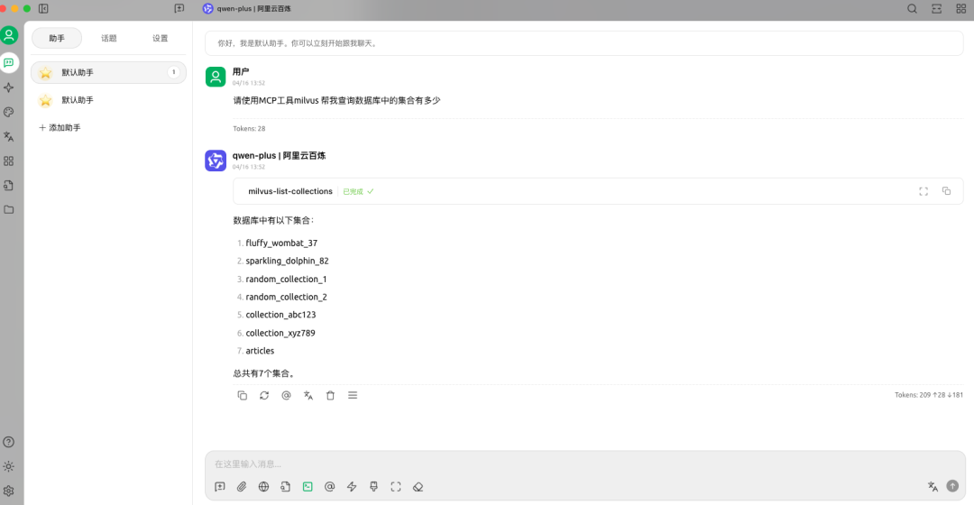 请使用MCP工具milvus 帮我查询数据库中的集合有多少?