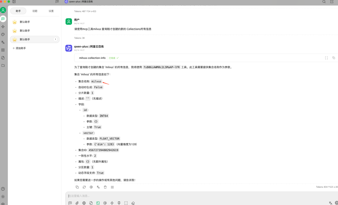 请使用mcp工具milvus,查询刚才创建的新的Cooolctions所有信息