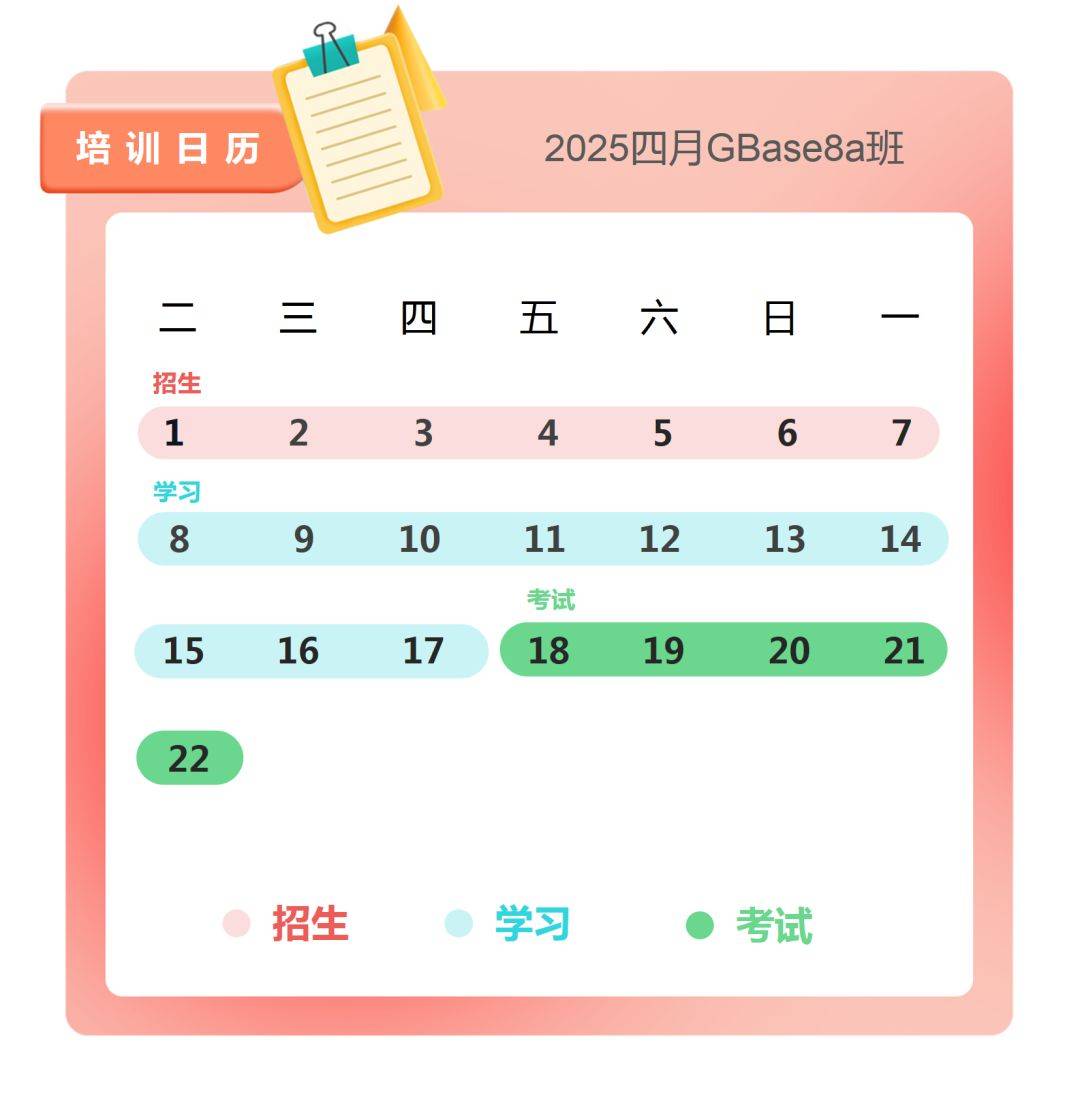 GBASE培训中心计划于2025年04月08日举办“2025四月GBase 8a MPP Cluster 认证培训班”,数据库版本是市场普及版。通过报名、培训技术答疑、考试通过者免费获得具备国产数据库认证资质的数据库管理电子证书。敬请关注!
