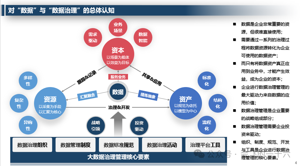 - 数据是企业的重要资源,需要通过治理转化为可使用的数据资产。
