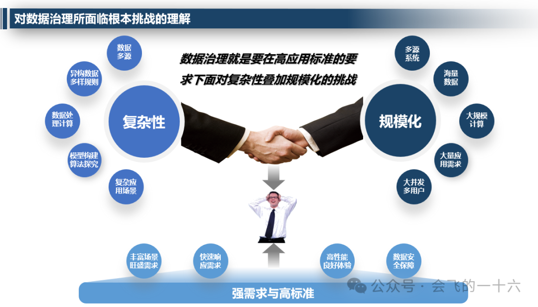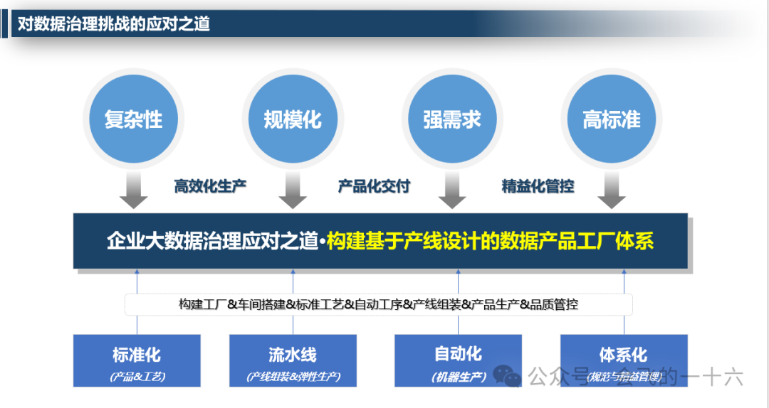 - 数据治理面临强需求与高标准的挑战,需要通过标准化、自动化等方法应对。