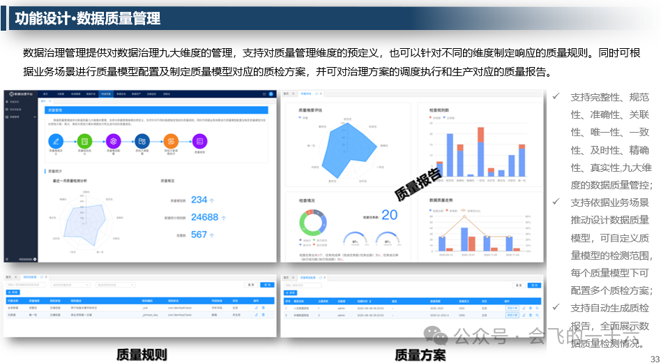 - 数据质量管理:提供九大维度的数据质量管控,支持质量模型配置和质检方案制定。