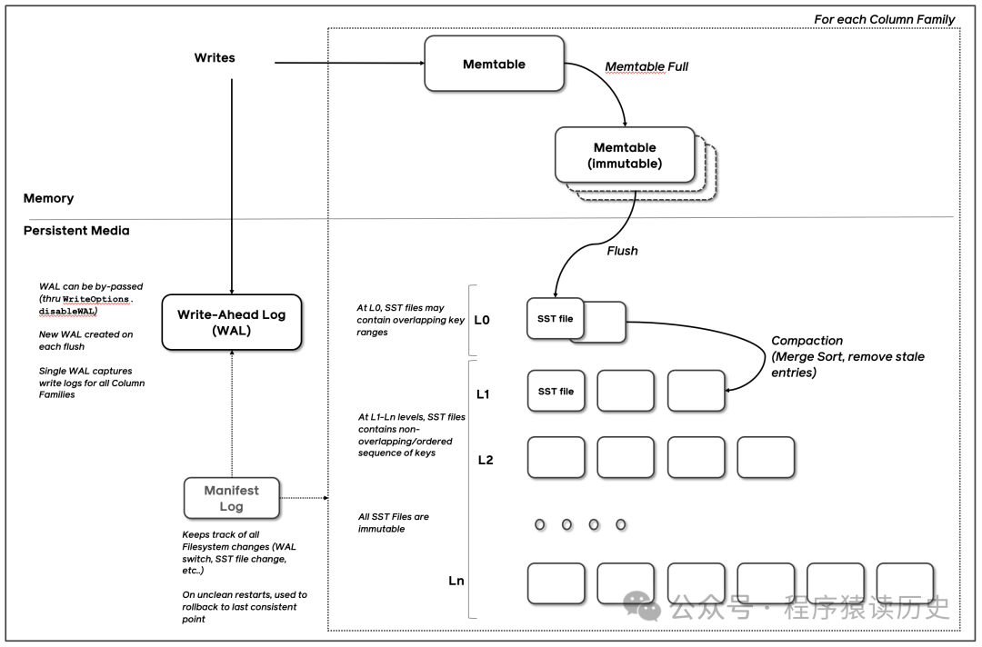 RocksDB支持多种存储介质,包括SSD和HDD,并提供了丰富的配置选项以适应不同的工作负载。它具备高吞吐量和低延迟的特点,适合于需要处理大规模数据的应用,如实时分析、运营智能和机器学习。RocksDB还支持列族(Column Family)、压缩、缓存和WAL(Write-Ahead Logging),以进一步提高性能和可靠性。