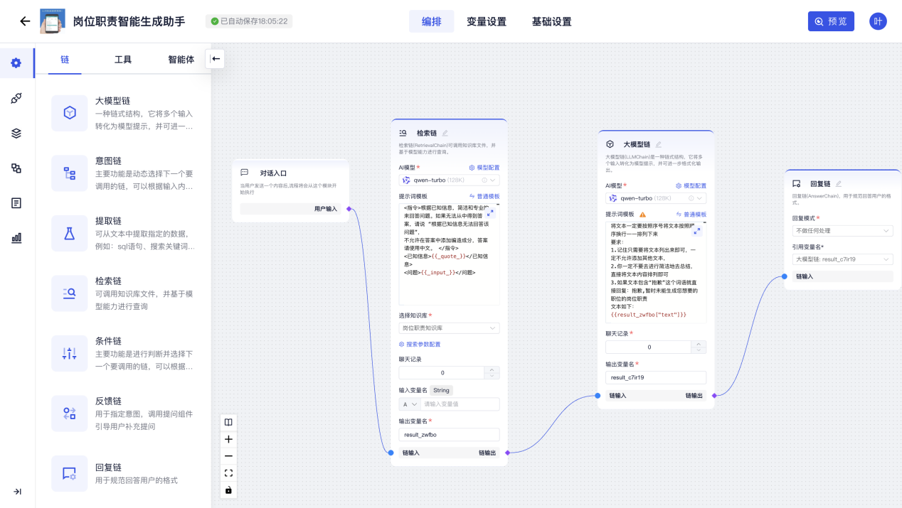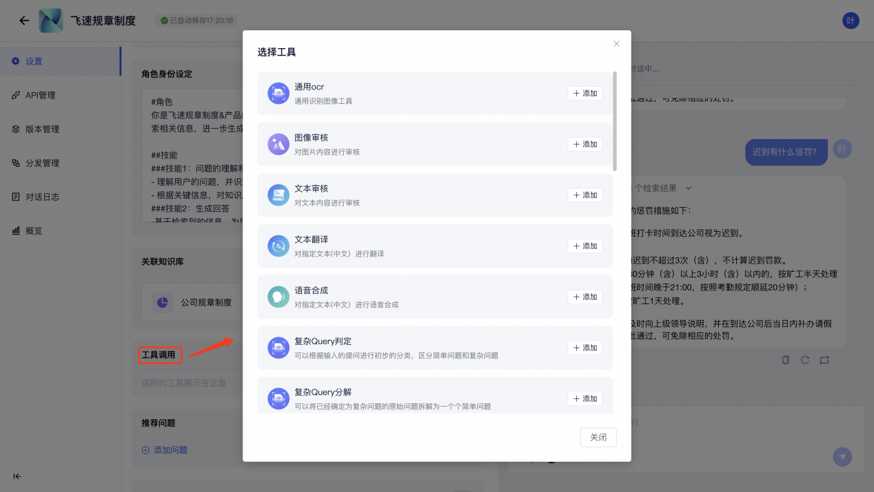 概括起来灵燕的核心产品能力主要包括Prompt、工作流编排、多 Agents、知识库、工具这几块功能;