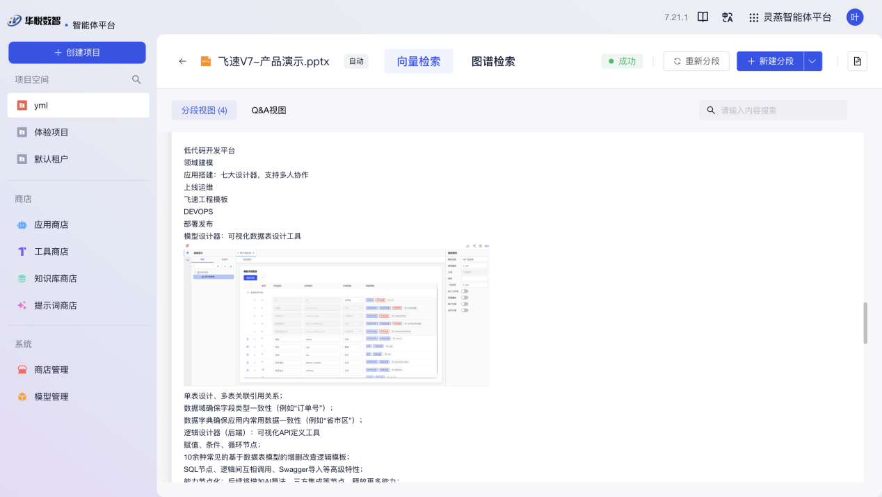 知识库文件解析支持 RAG 和GraphRAG两种处理技术;并且支持精准解析文档中的图片、表格同时能够识别文档中的“标题”和“段落”,在知识库解析这块灵燕平台功能比较强大,优于市面上的大部分 Agent 开发平台,同时GraphRAG解析也是我们平台的创新功能;