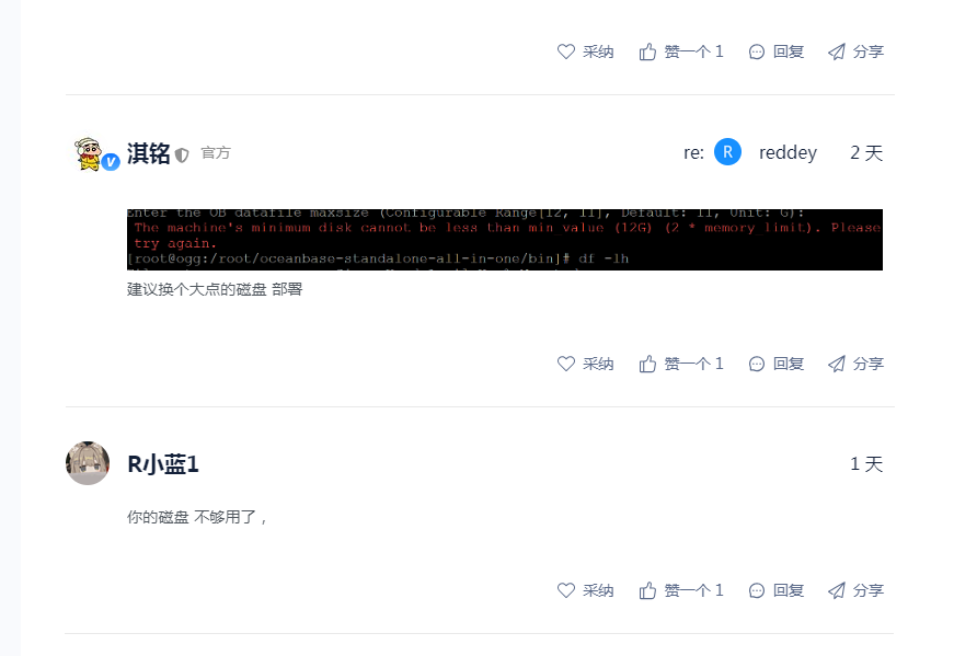 总结:回想OB单机版数据库整个交互式安装过程,在解决问题过程中,整个人非常无助。虽然踩了坑,但总归还是爬了上来。如果大家和我是一样,是测试者,最好按功能最低配置进行硬件规划。同时也提醒大家,表面的信息报错可能会掩盖真实的故障原因,有可能是其它原因导致报错,要理性地换条思路去思考。
