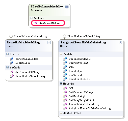 它就是负载均衡算法的实现接口,为了便于说明在Discuz.EntLib中内置的两个负载均衡算法的实现情况,请先看下图: