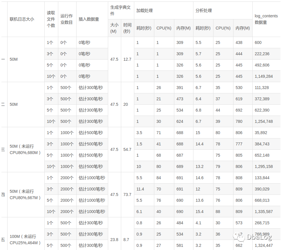 c) 加载分析过程中受分析日志文件个数最大是内存,其次是CPU,耗时应影响较小;
