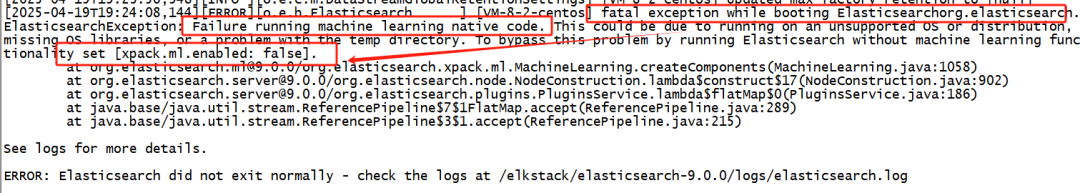 部署时候记得设置:“xpack.ml.enabled: false”,否则可能会有如下报错。
