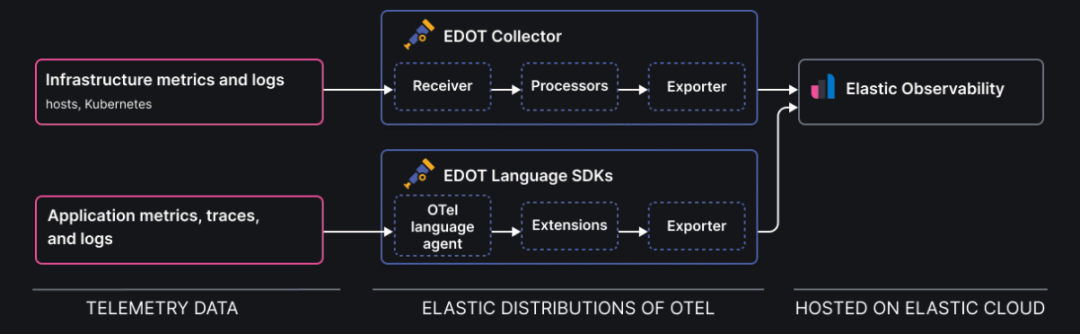EDOT 提供了原生的 OpenTelemetry 架构支持,简化了数据采集和分析流它支持统一的信号格式,增强了跨系统的可观测性,特别适用于多云和混合云环。