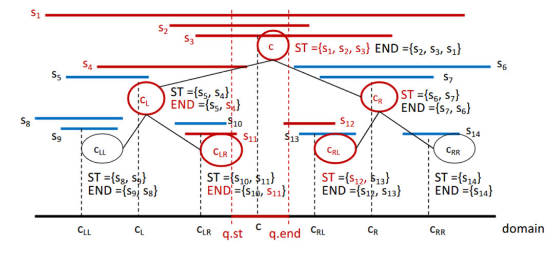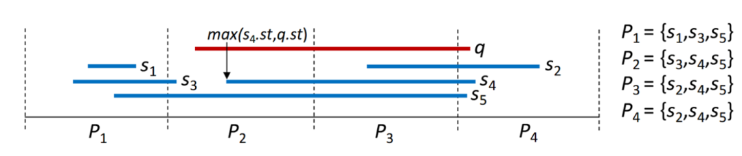 区间数据的范围查询方法都维护了一些索引。这些索引或根据时间点,或根据时间片段,将数据库中的区间数据分配到一些分片上作为索引。查询时便可通过索引快速定位相关区间,避免全遍历的高开销。
