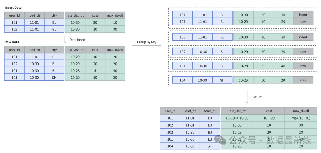 聚合模型专为高效处理大规模数据查询中的聚合操作设计,根据 Key 列聚合数据,在数据写入时自动维护 SUM/MAX/MIN 等聚合状态, Doris 存储层保留聚合后的数据,从而减少存储空间,极大的降低聚合查询时所需要扫描的数据量和查询计算量,非常适合有固定模式的报表类查询和指标看板等场景。