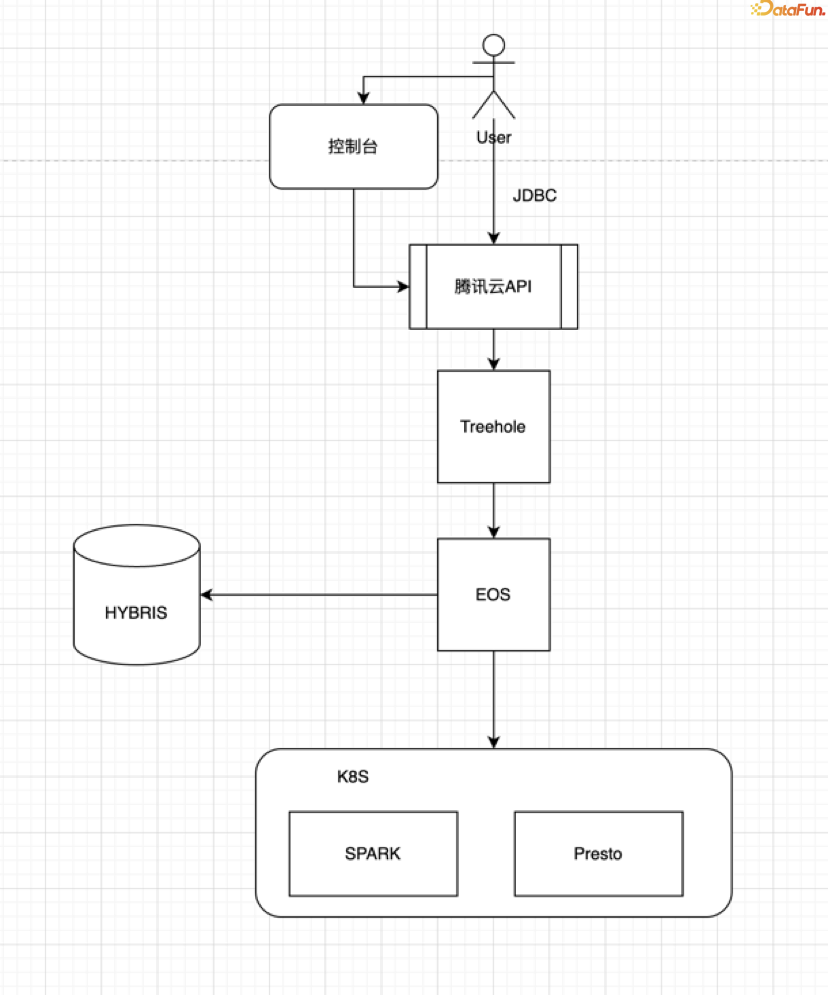 DLC 整个任务链路分为 Treehole, EOS, Hybris 3 个组件,每个组件都以多实例方式通过 Kubernetes 进行部署。Treehole 服务:负责计费,底层 K8S 资源的申请,引擎生命周期管理,任务路由,